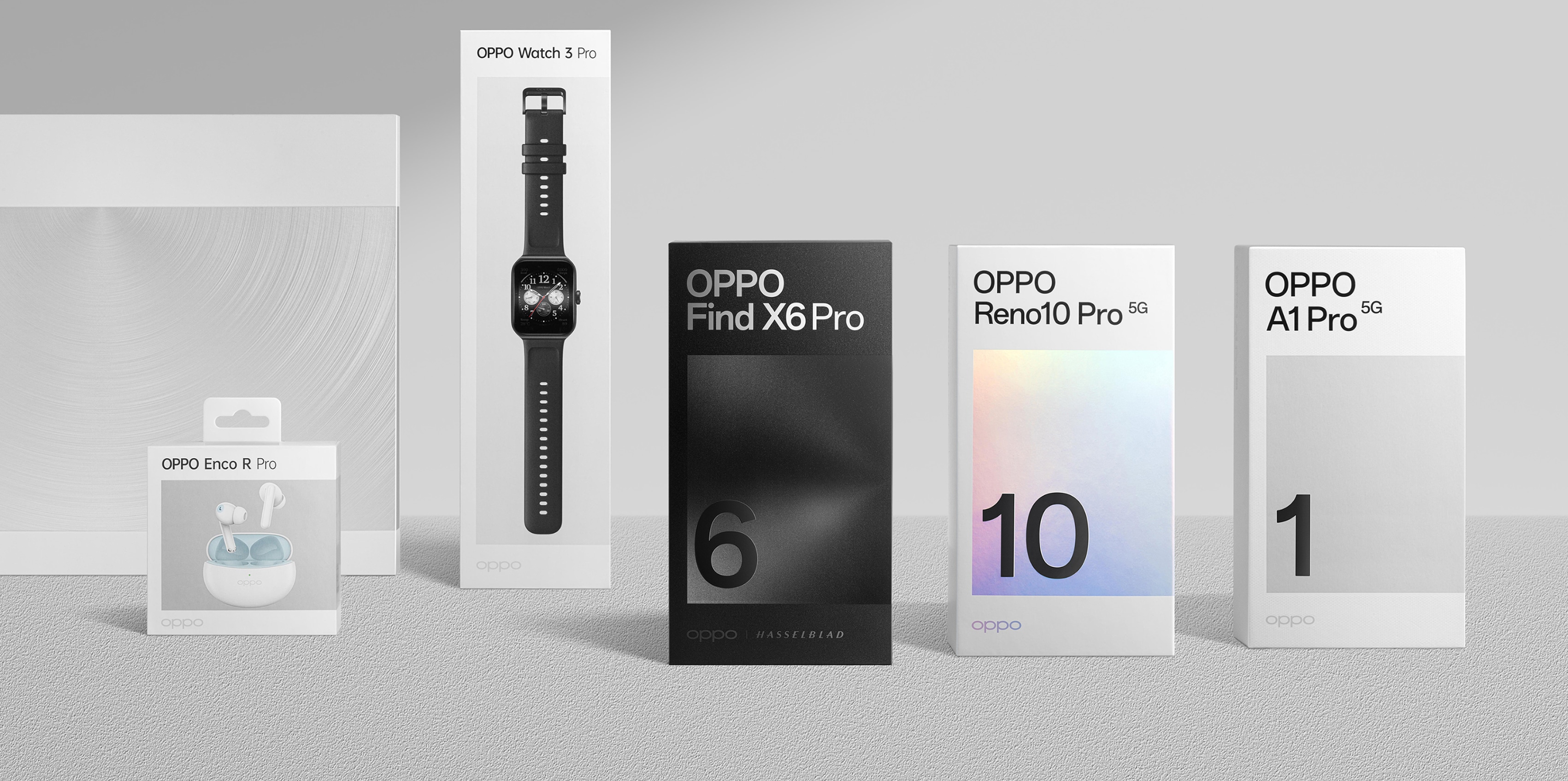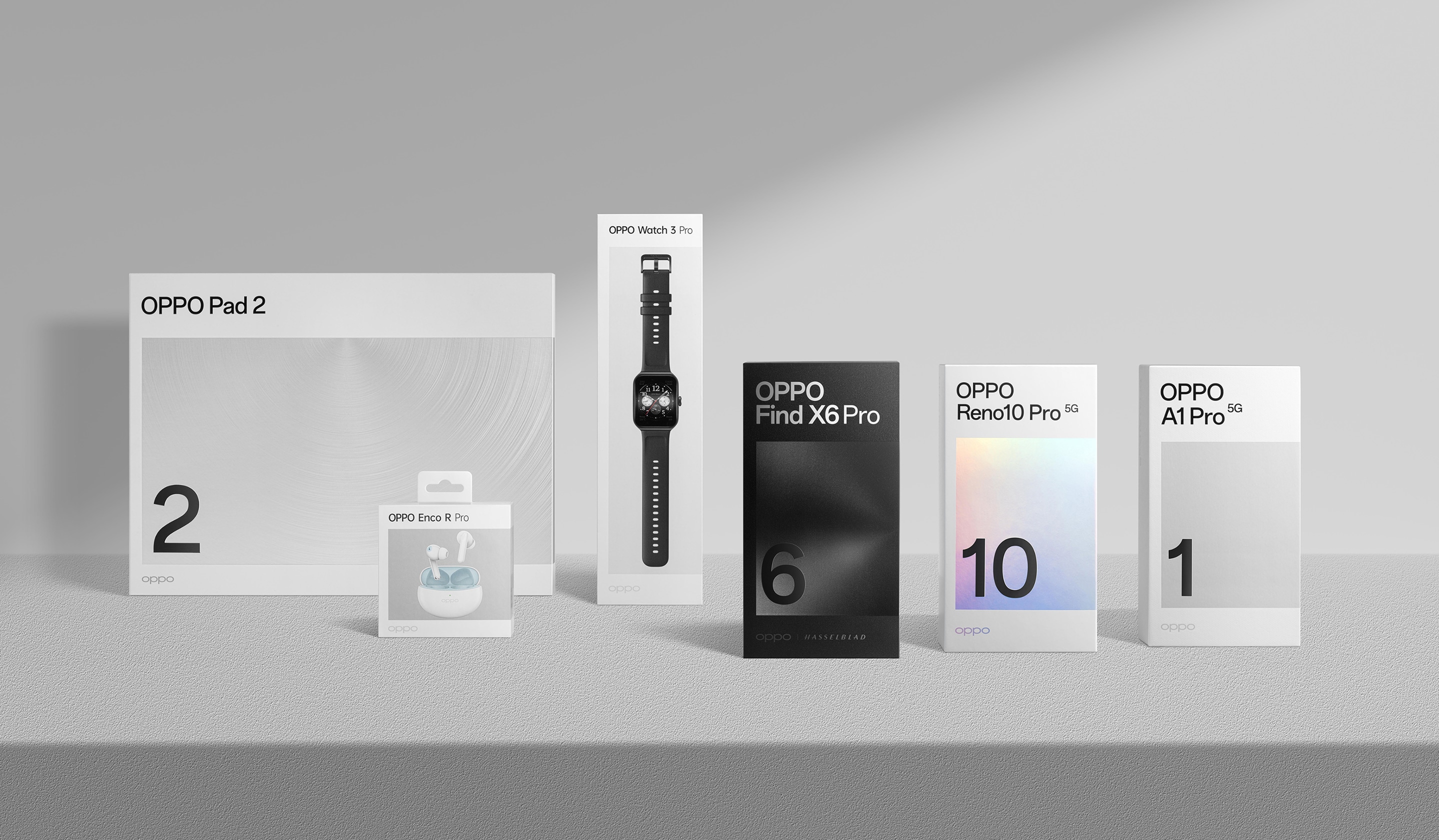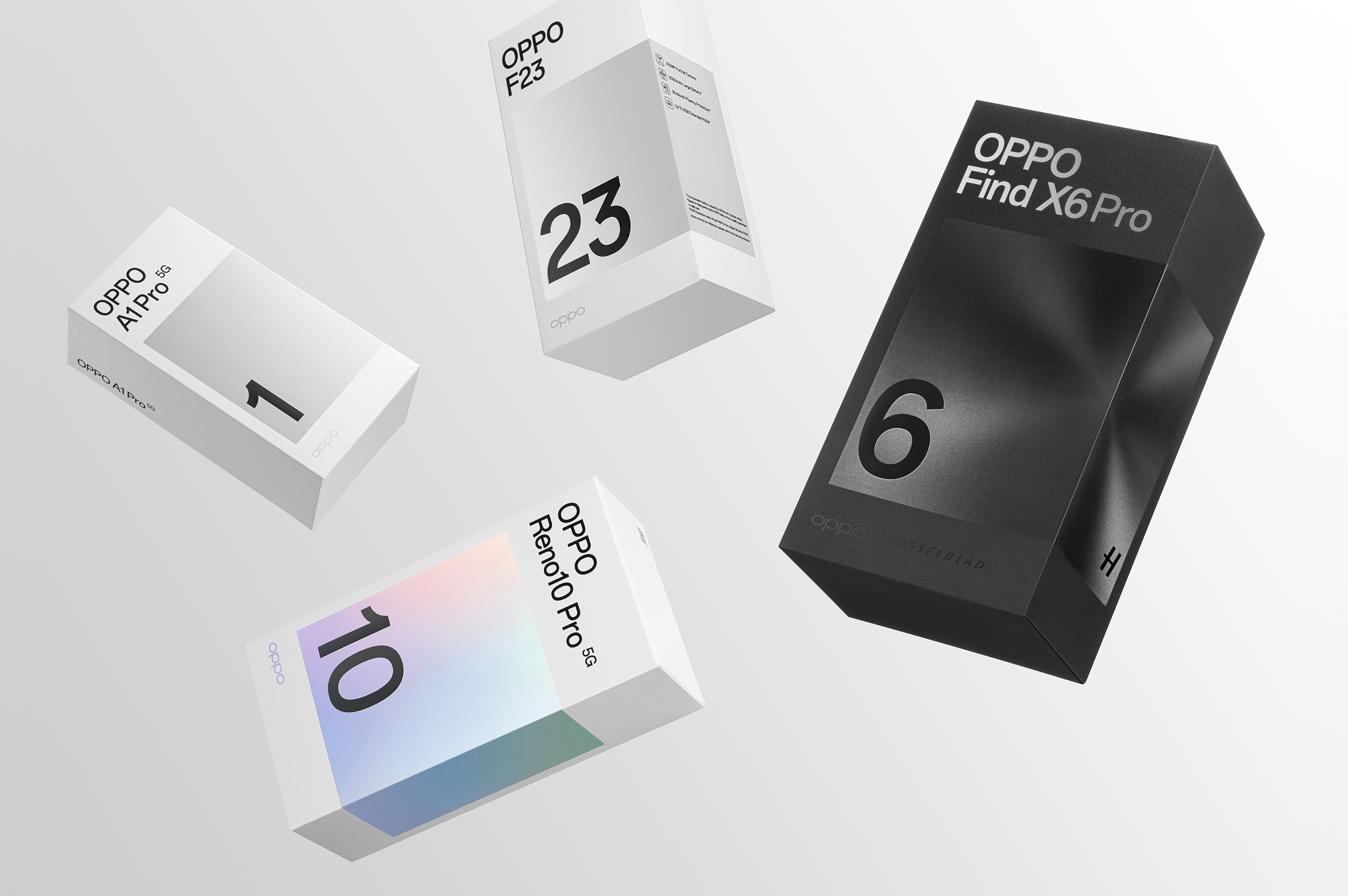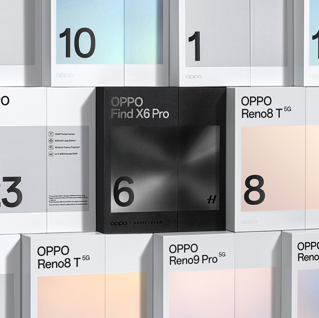 2023 年,面对依然激烈竞争的环境,我们升级了全球包装设计系统,以"家族化视觉"的全新面貌让大家重新认识 OPPO。